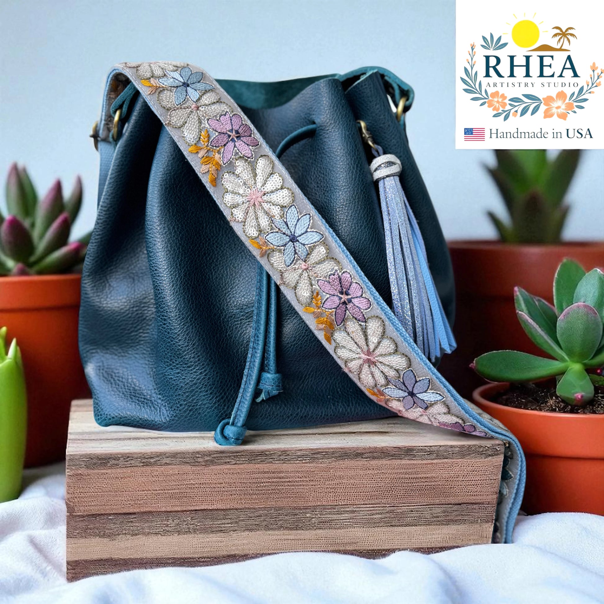 2-inch Daisy Decode Collection - Floral Embroidered Adjustable Bag Strap